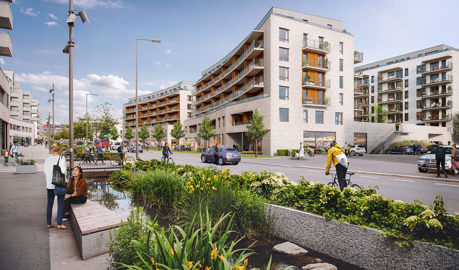 Nå har Ensjø langt på vei gått fra å være «bilbyen» til å bli en moderne boligby i vekst.